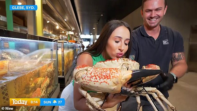 Today reporter Taylor Haynes was pinched by a giant crab on Friday morning whikle taking viewers on a tour of the Sydney Fish Markets