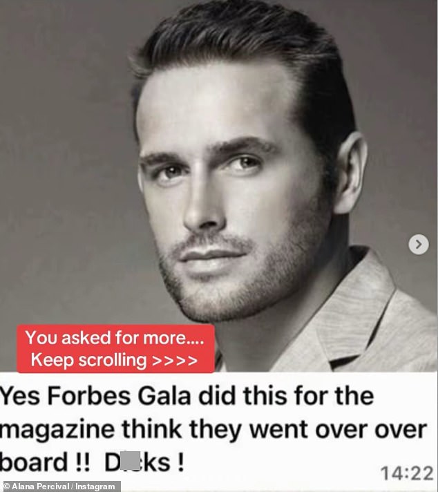 Alana then claimed she had contacted Forbes to establish the claims, with a post reading: ‘FINAL VERDICT. After checking editorial content, lists, events and partner publications: There is no evidence that Lee Andrews has ever been mentioned – directly or indirectly – by Forbes or Forbes Middle East…
