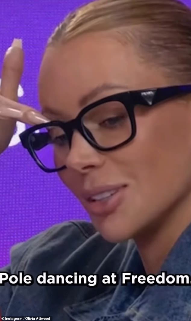 Olivia shared a clip of herself on her KISS FM radio show, where she says: ‘What’s your favourite kind of cardio? You know what mine is? Pole dancing in Freedom.’