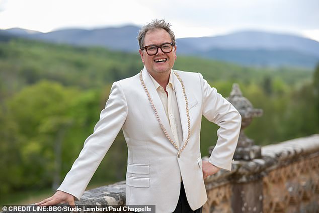 Alan Carr is days away from getting the keys to the £3.25million Traitors-style Scottish castle he plans to renovate for a TV show – complete with 17 bedrooms, a private chapel and 106-acre gardens (pictured earlier this year)