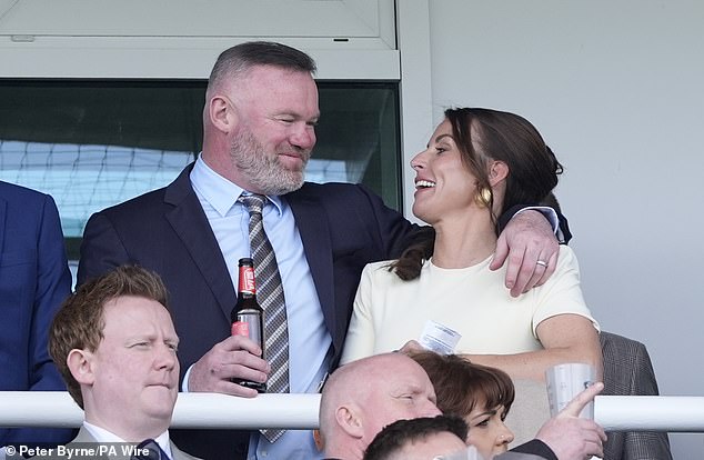 The WAG, 40, put on a cosy display with her husband Wayne, 40, as they were spotted together in the crowd while sipping on a glass of fizz
