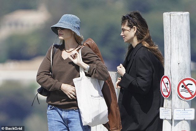 The actresses were spotted chatting away as they arrived by boat and walked along the beach to the restaurant.