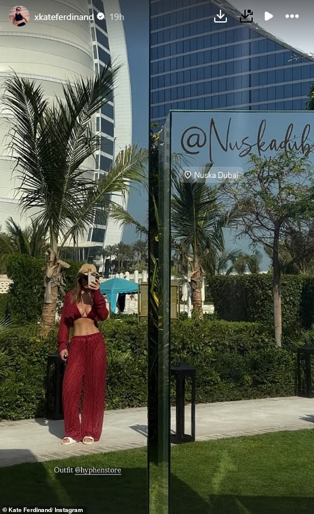 Kate shared a snap of Tia back in Dubai looking out at Dubai’s eye-catching skyline.