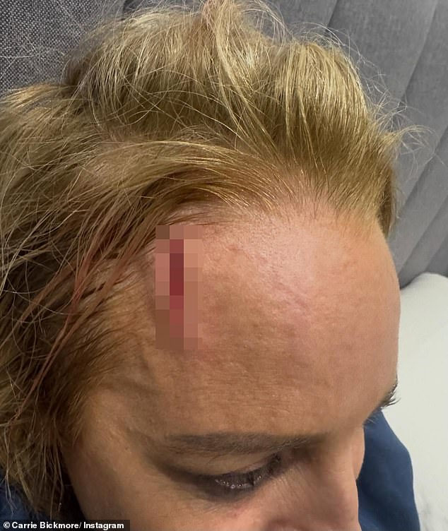 An enormous gash had opened up on her head as a result, with Carrie describing the moment as a ‘crime scene’ due to all the blood