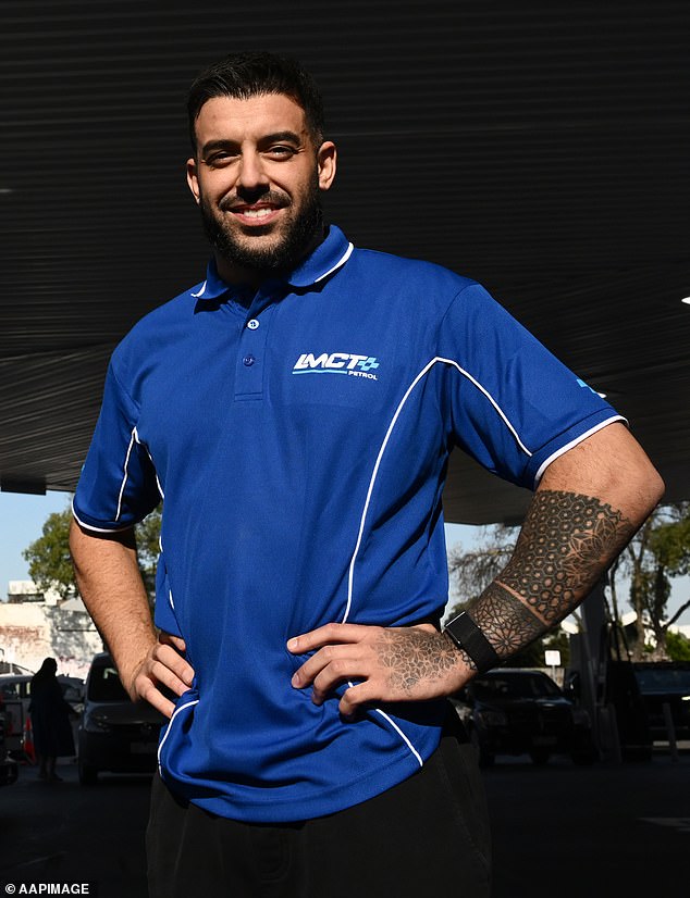 Known as ‘Mr Lambo’, Portelli was interviewed during a personal appearance at his new petrol station in Melbourne’s Preston. Pictured: Portelli talks to his customers