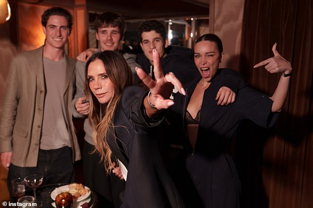 Victoria was joined by her husband David, daughter Harper, 14, and son Cruz, 21, and his girlfriend Jackie Apostel, 30, for the event – though her son Brooklyn, 27, was expectedly absent amid their continuing family feud.