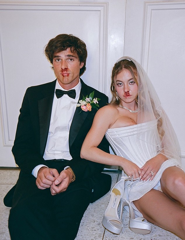 Sydney Sweeney and Jacob Elordi posed covered in blood and enjoyed a very saucy first wedding dance in behind-the-scenes images from HBO show Euphoria.